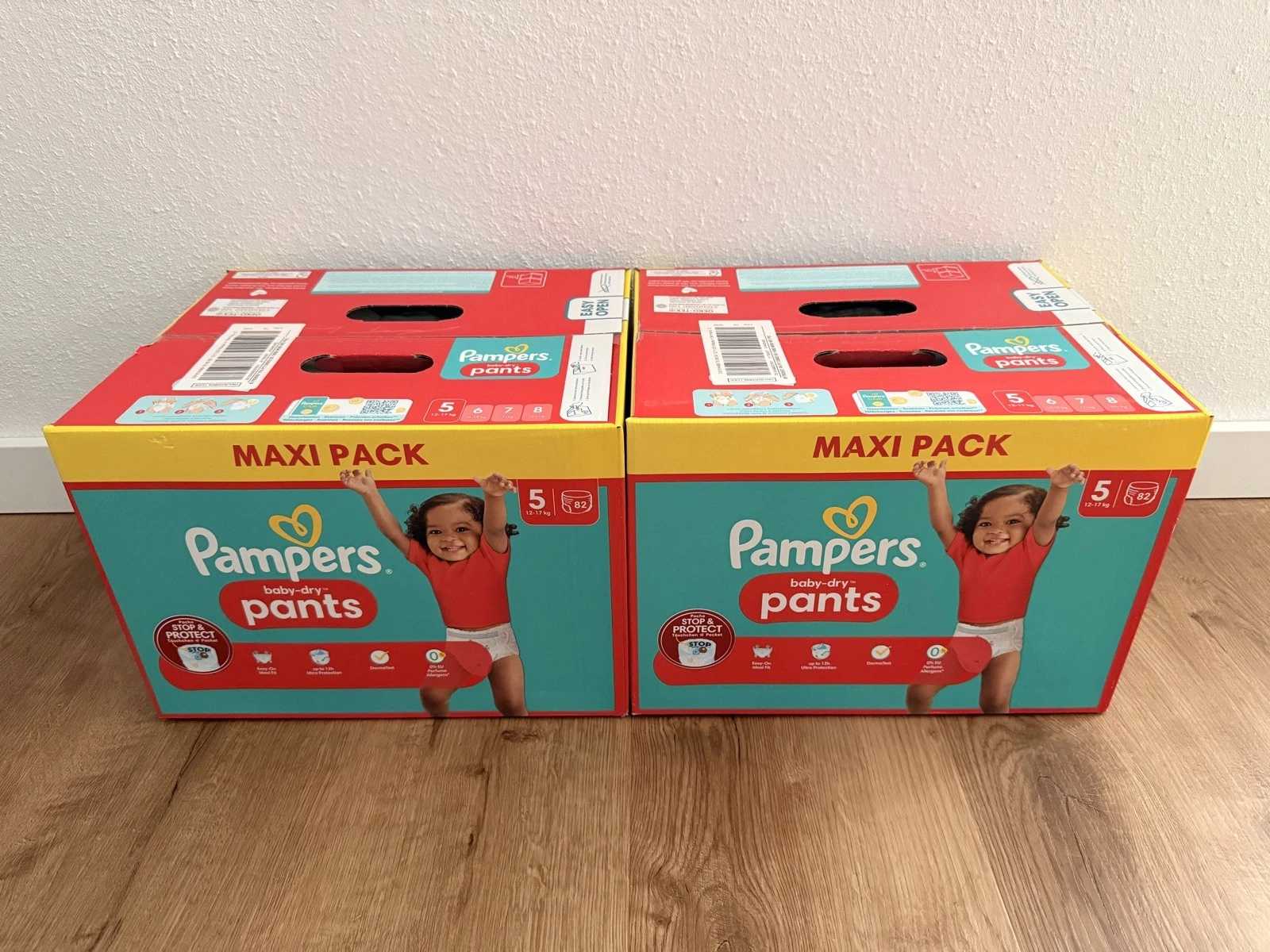 Experience top quality and comfort with Pampers Baby-Dry Pants diapers in size 5, ideal for children weighing 12 to 17 kg. This pack contains 82 pieces of high-quality disposable diapers, made with soft cotton fibers to protect your baby’s delicate skin. Thanks to their innovative technology, Pampers diapers provide optimal protection both day and night, ensuring gentle and natural dryness. Secure this essential bulk pack for your daily childcare needs and enjoy the reliability and quality that Pampers is known for.
