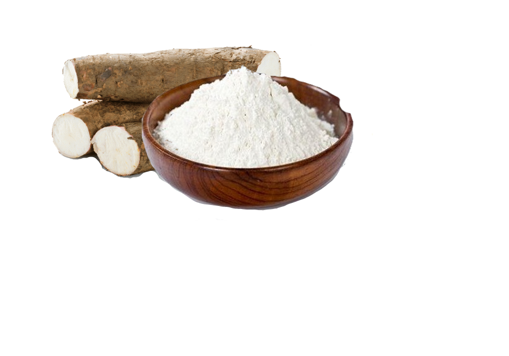 A white creamy fine powder made of tapioca starch (tapioca flour).